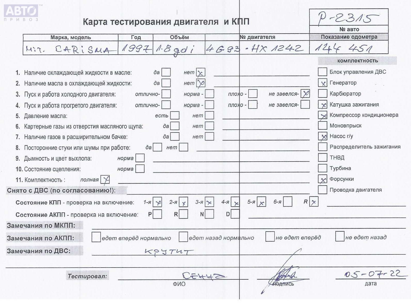 | Марка / Модель / Год: | Mitsubishi Carisma 1998 |