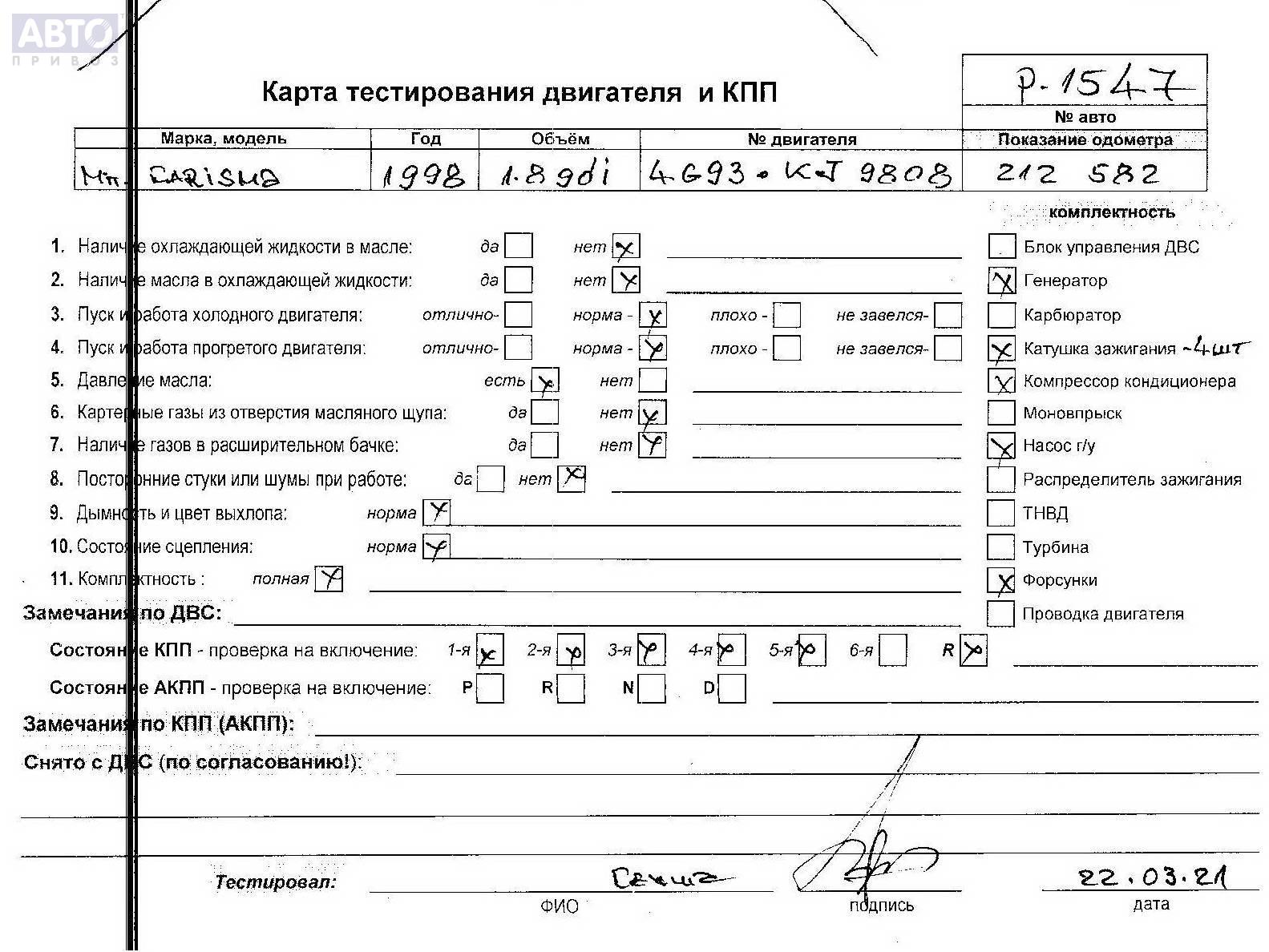 | Марка / Модель / Год: | Mitsubishi Carisma 1999 |