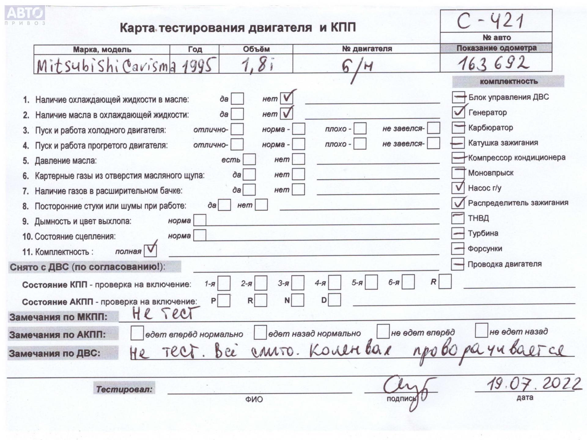 | Марка / Модель / Год: | Mitsubishi Carisma 1995 |