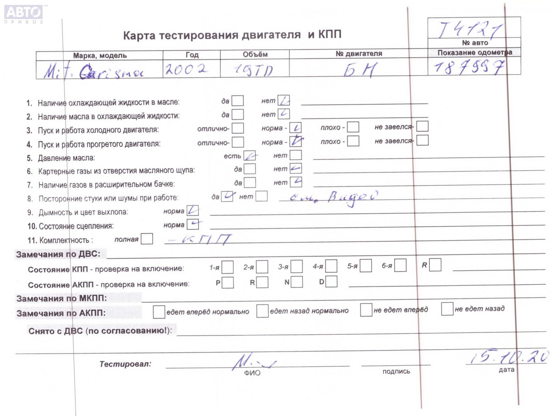 | Марка / Модель / Год: | Mitsubishi Carisma 2002 |