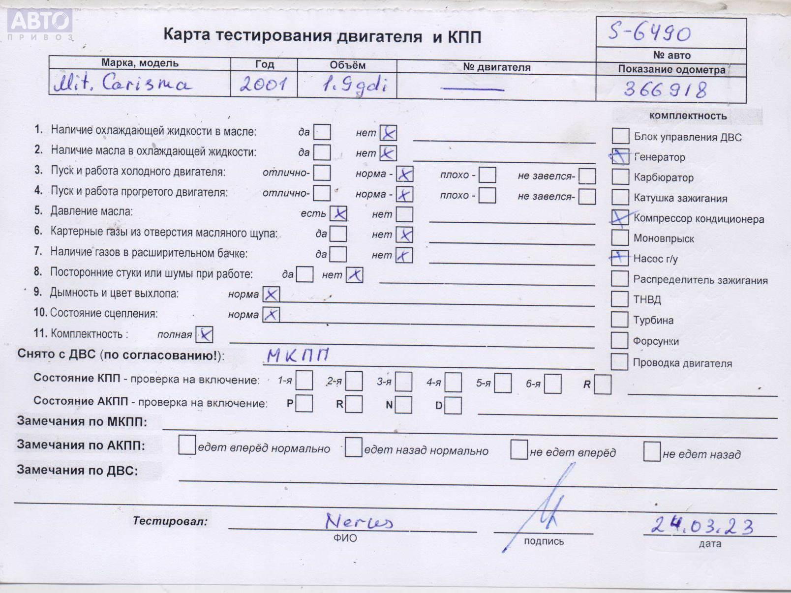 | Марка / Модель / Год: | Mitsubishi Carisma 2001 |