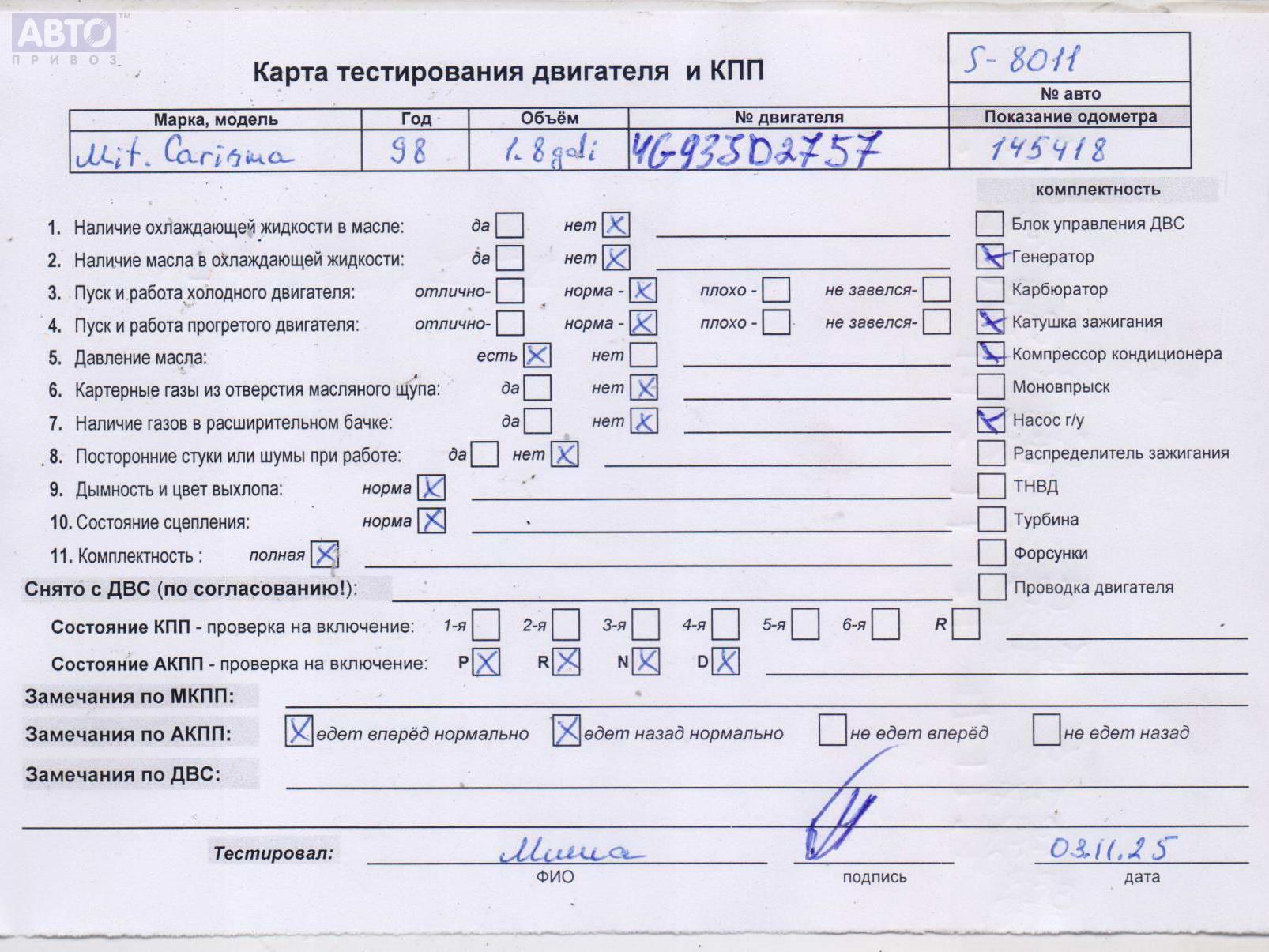 | Марка / Модель / Год: | Mitsubishi Carisma 1998 |