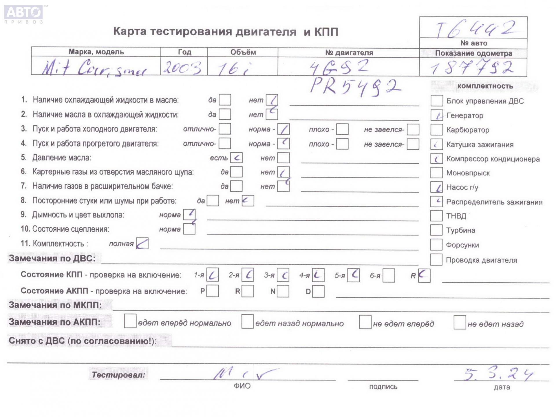 | Марка / Модель / Год: | Mitsubishi Carisma 2003 |