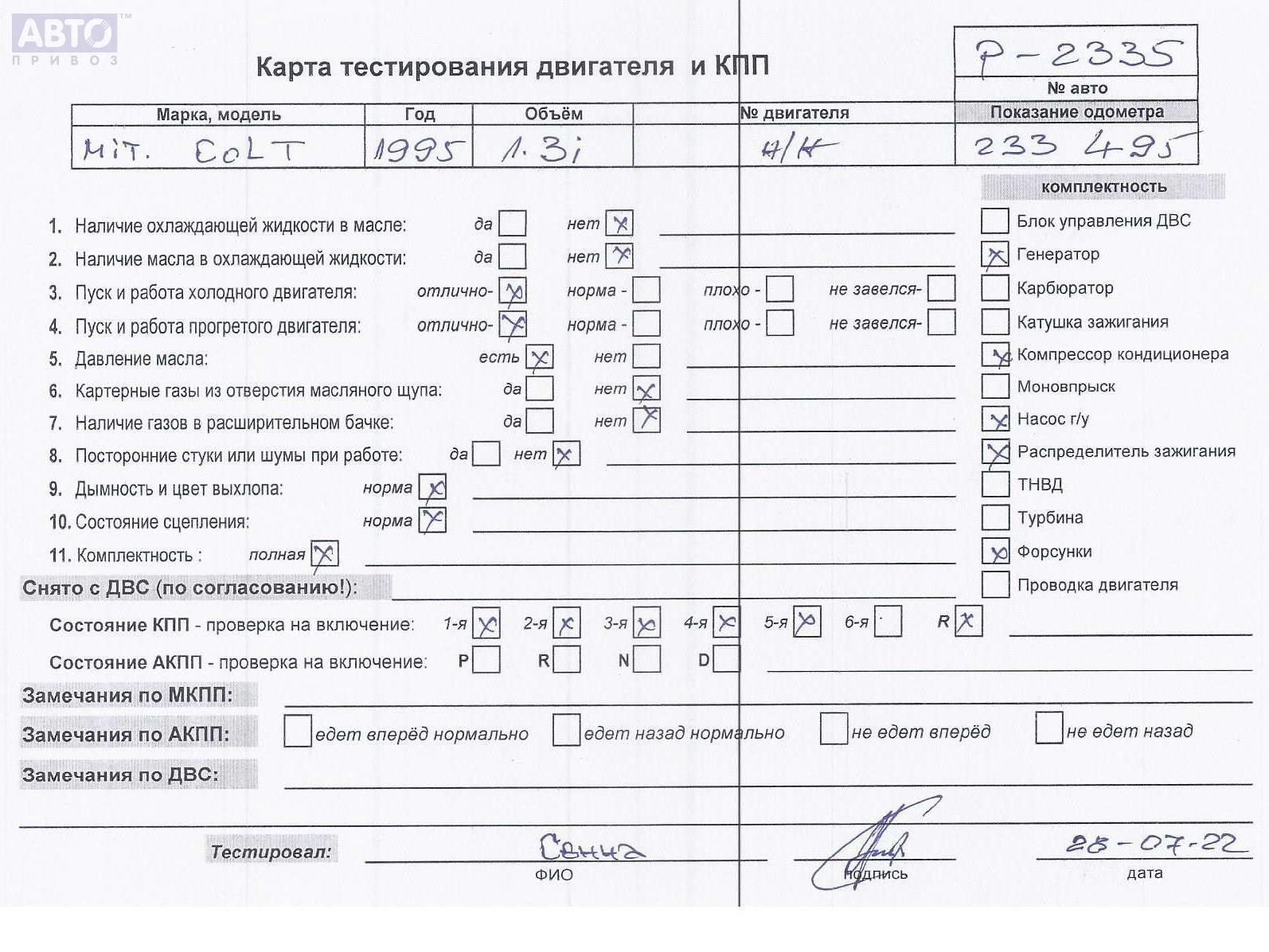| Марка / Модель / Год: | Mitsubishi Colt (1992-1996) 1995 |