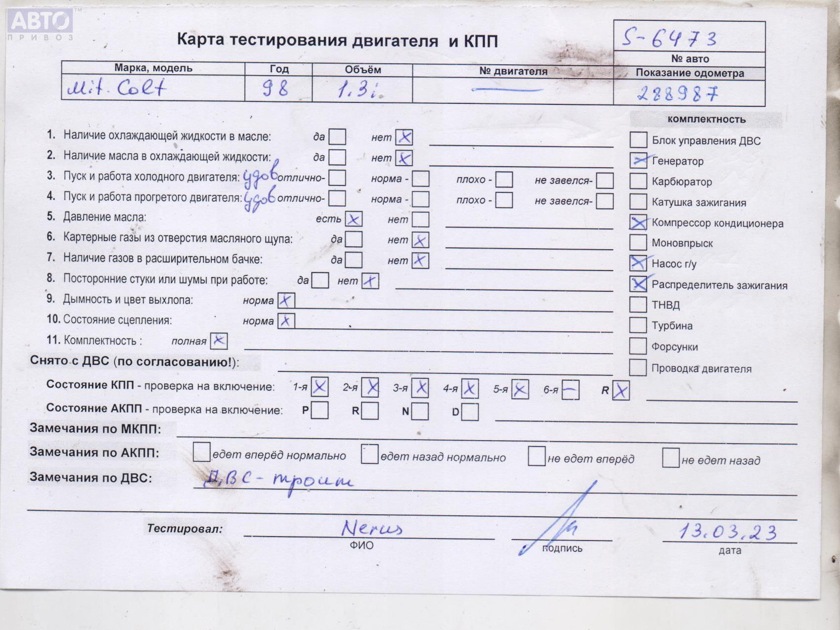 | Марка / Модель / Год: | Mitsubishi Colt (1996-2004) 1998 |
