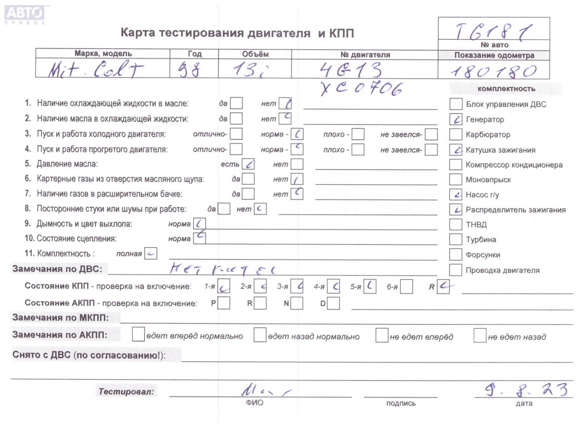 | Марка / Модель / Год: | Mitsubishi Colt (1996-2004) 1998 |
