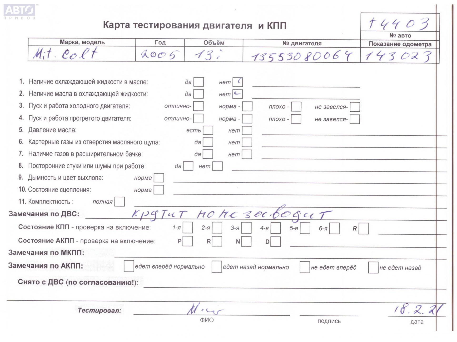 | Марка / Модель / Год: | Mitsubishi Colt (2004-2012) 2005 |