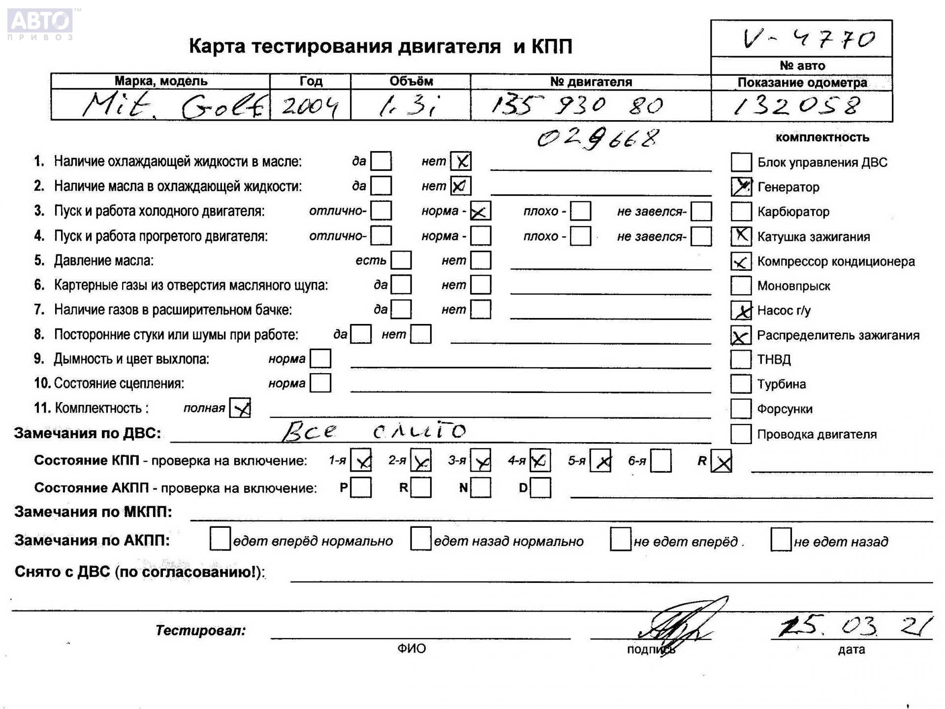 | Марка / Модель / Год: | Mitsubishi Colt (2004-2012) 2004 |