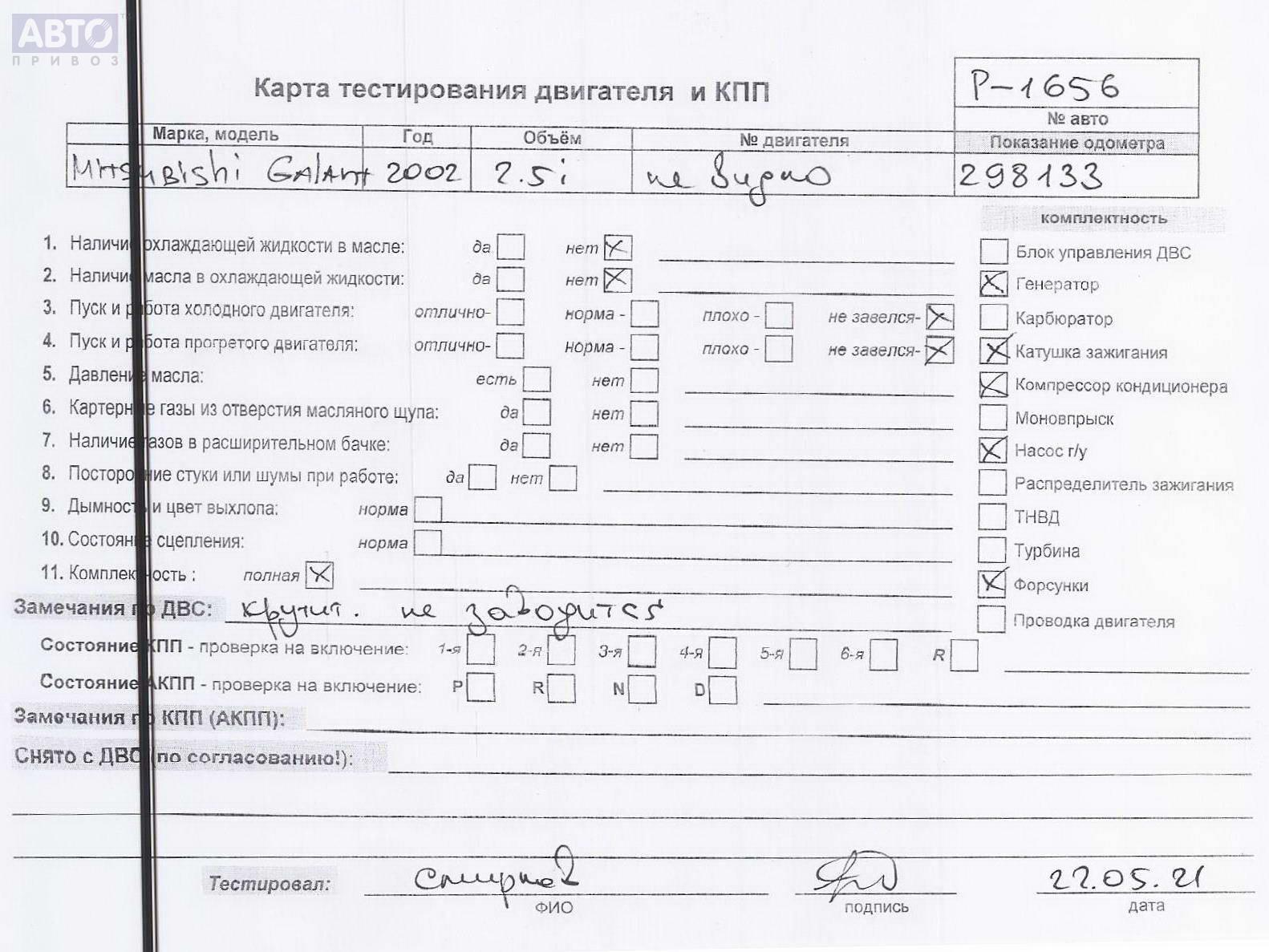 | Марка / Модель / Год: | Mitsubishi Galant (1996-2003) 2001 |