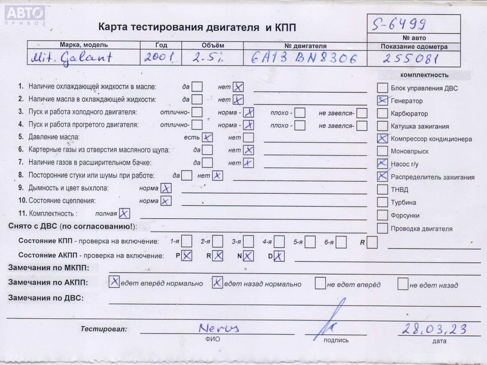 | Марка / Модель / Год: | Mitsubishi Galant (1996-2003) 2001 |