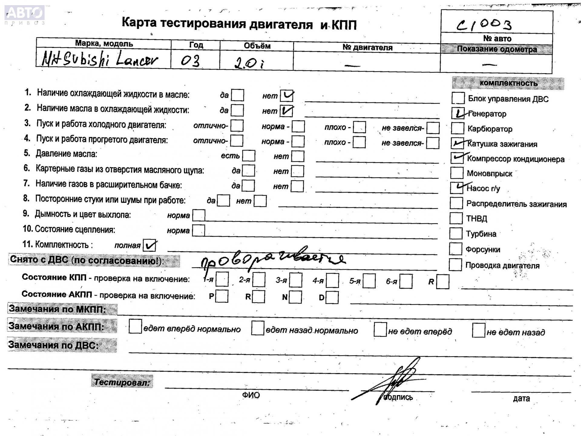 | Марка / Модель / Год: | Mitsubishi Lancer (2000-2010) 2003 |