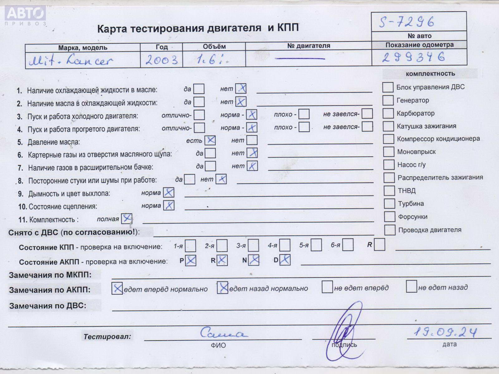 | Марка / Модель / Год: | Mitsubishi Lancer (2000-2010) 2003 |