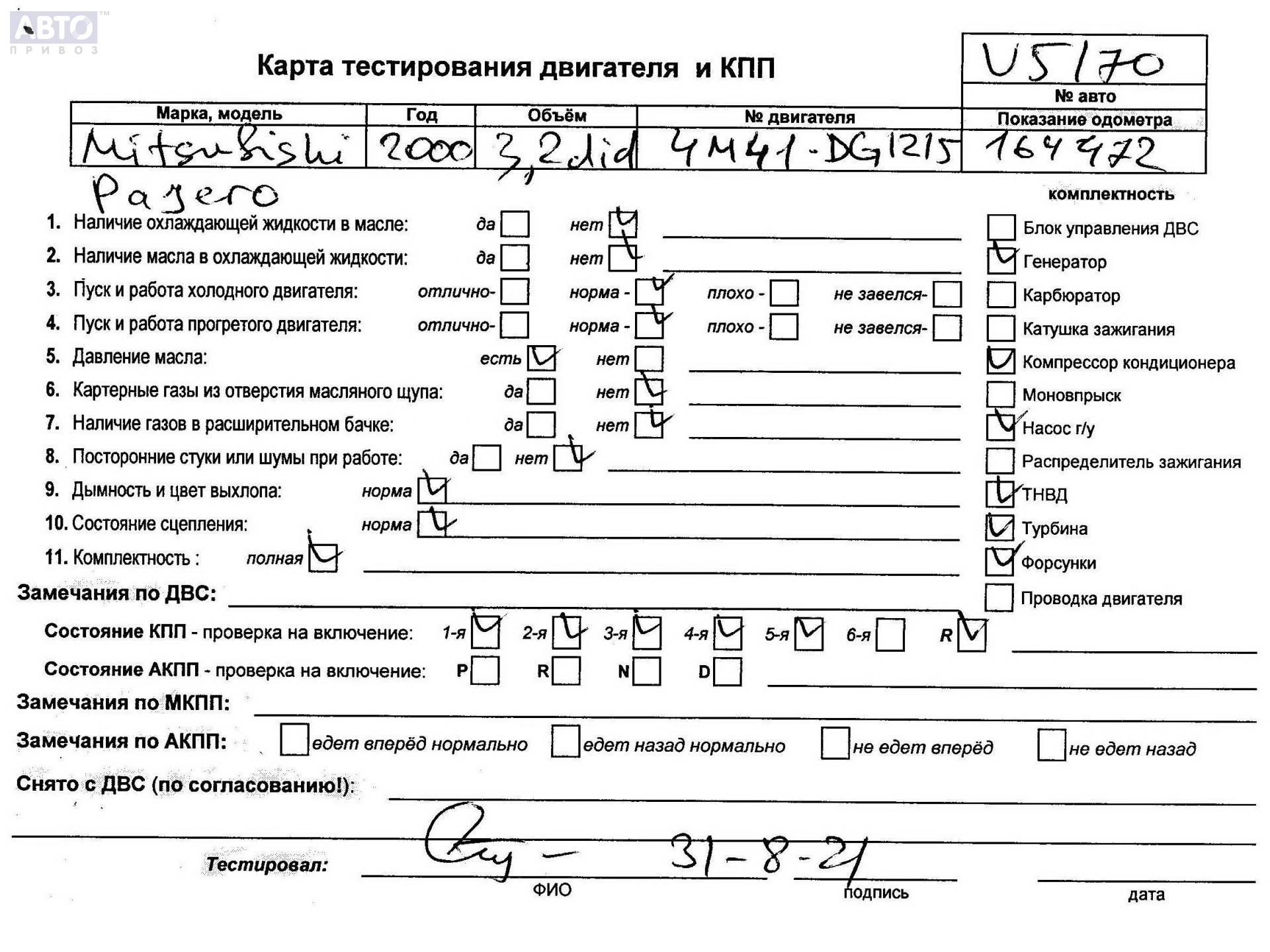 | Марка / Модель / Год: | Mitsubishi Pajero/Montero III (1999-2006) 2000 |