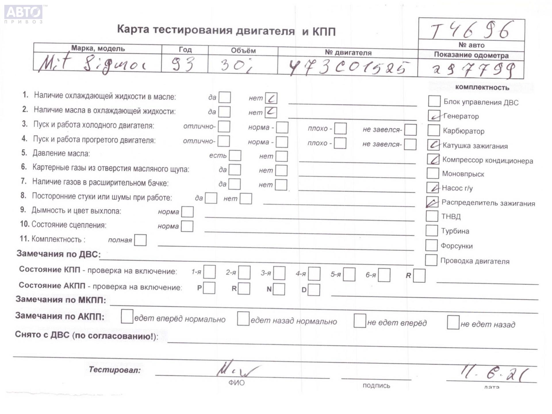 | Марка / Модель / Год: | Mitsubishi Sigma 1993 |