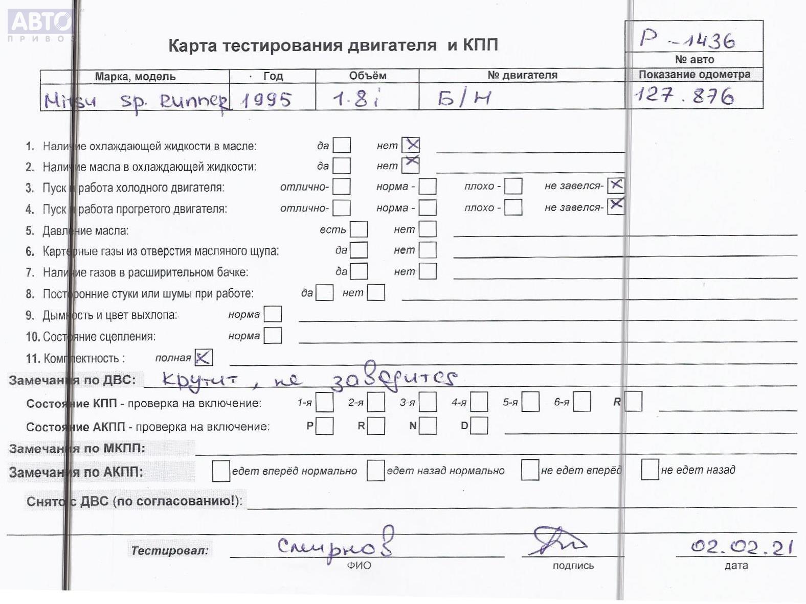 | Марка / Модель / Год: | Mitsubishi Space Runner (1991-1998) 1995 |