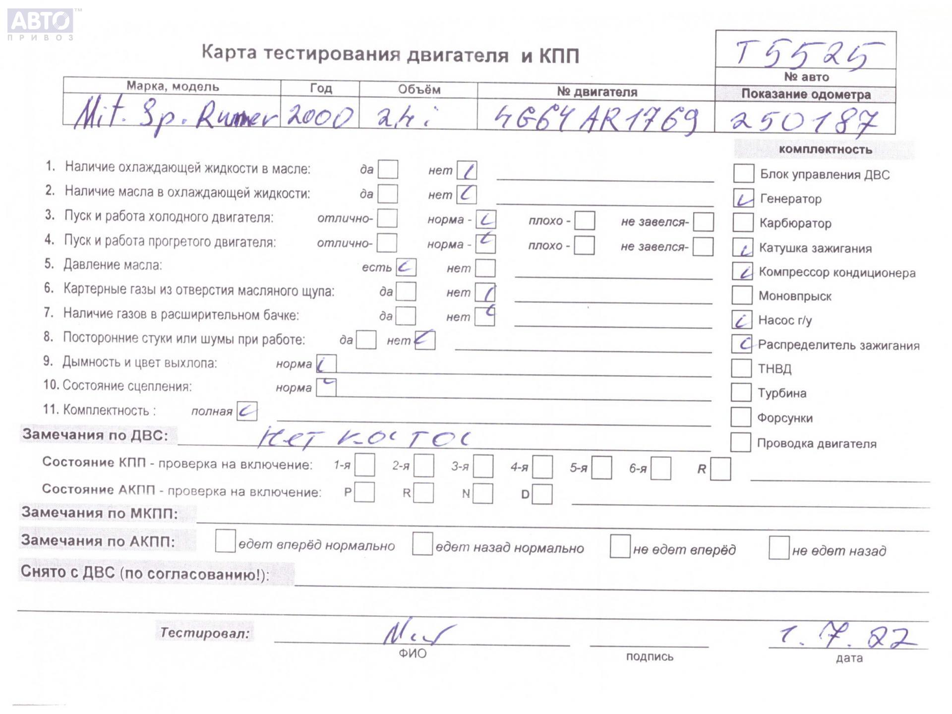 | Марка / Модель / Год: | Mitsubishi Space Runner (1999-2004) 2000 |