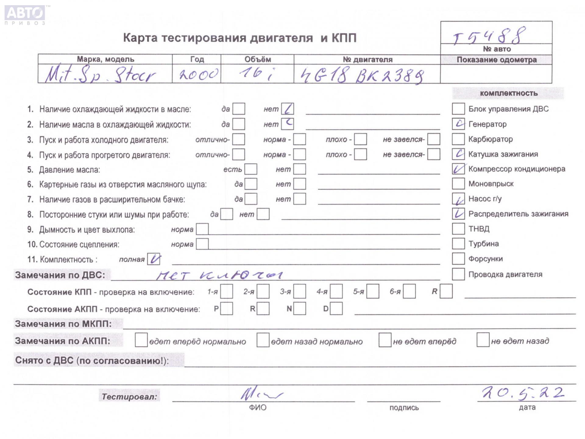 | Марка / Модель / Год: | Mitsubishi Space Star (1998-2005) 2001 |