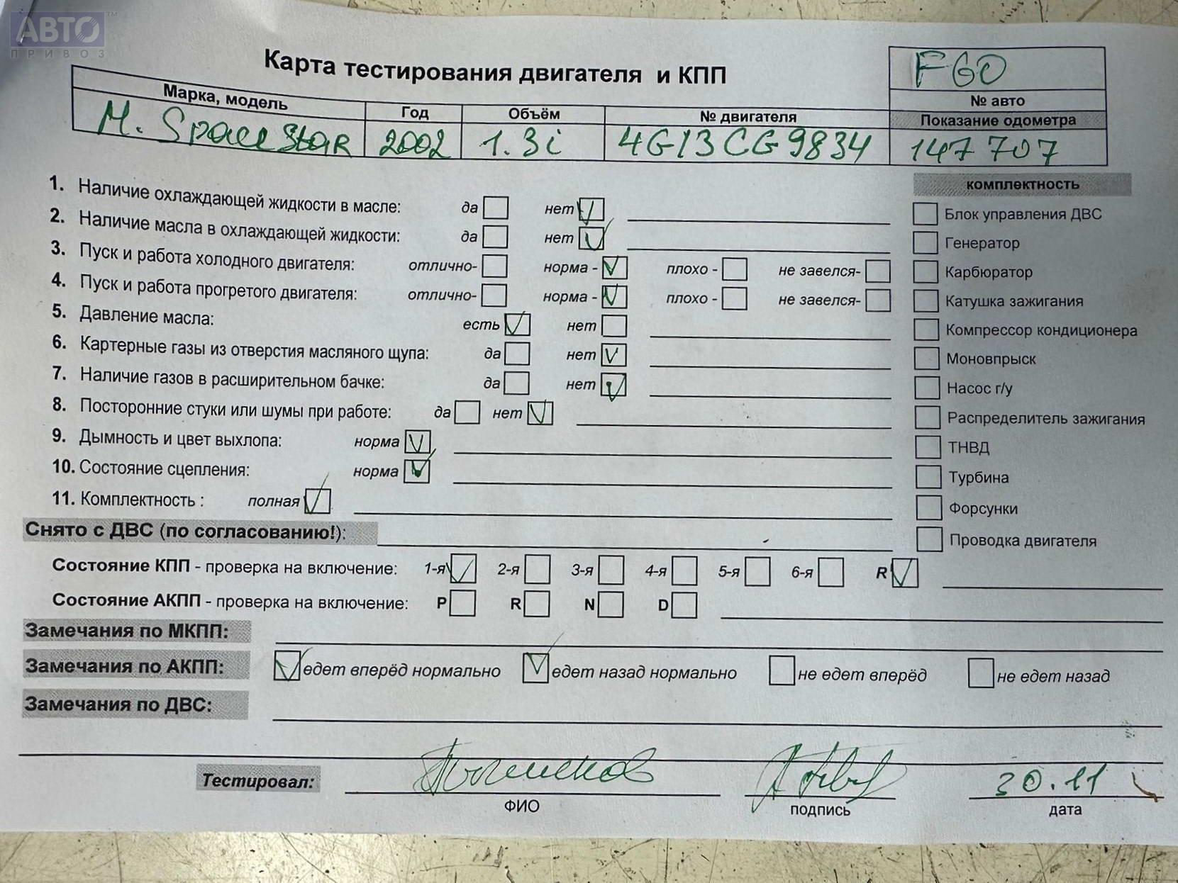 | Марка / Модель / Год: | Mitsubishi Space Star (1998-2005) 2002 |