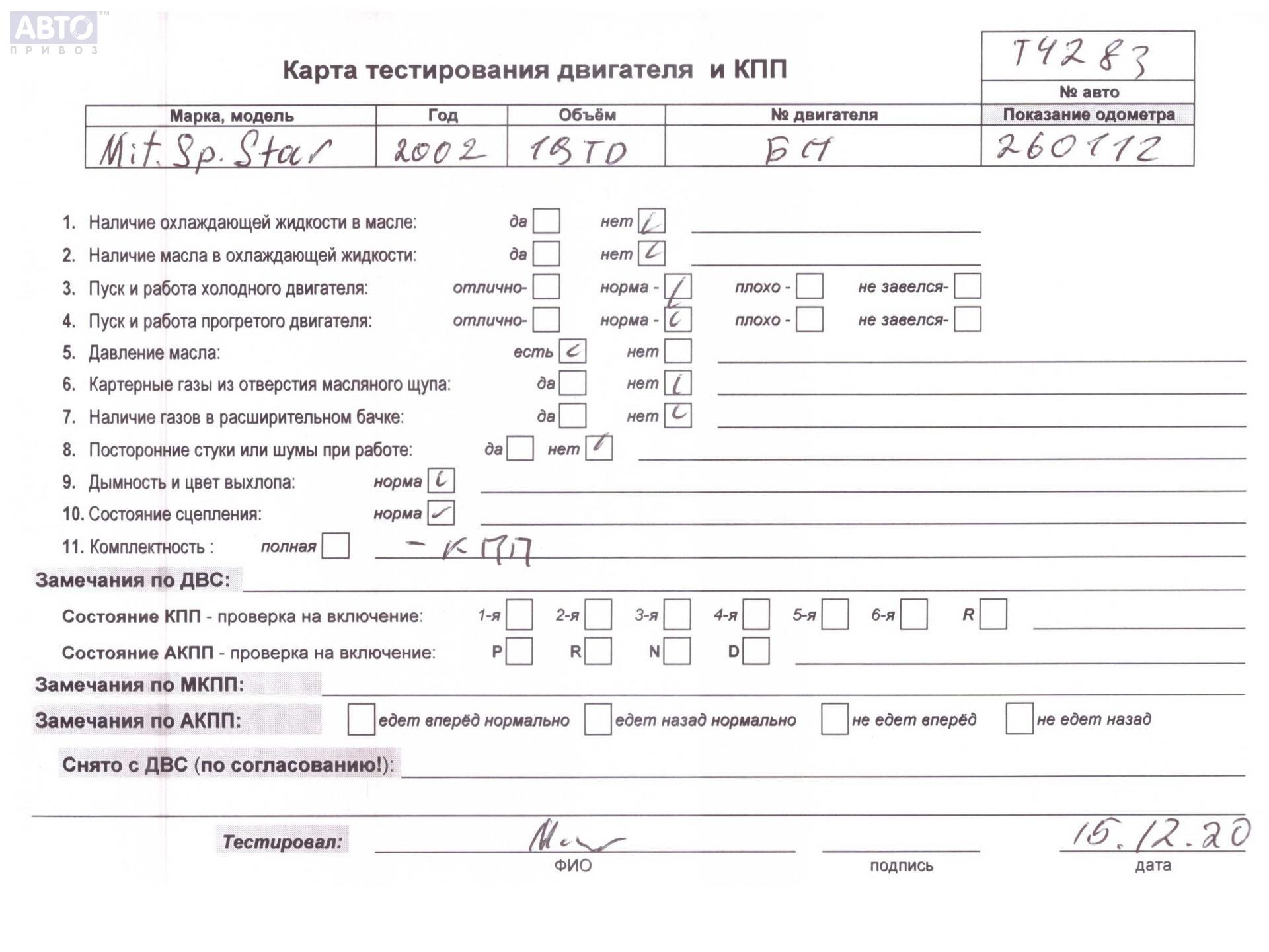 | Марка / Модель / Год: | Mitsubishi Space Star (1998-2005) 2002 |