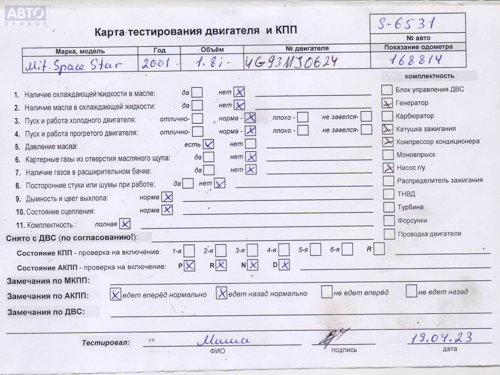 | Марка / Модель / Год: | Mitsubishi Space Star (1998-2005) 2001 |