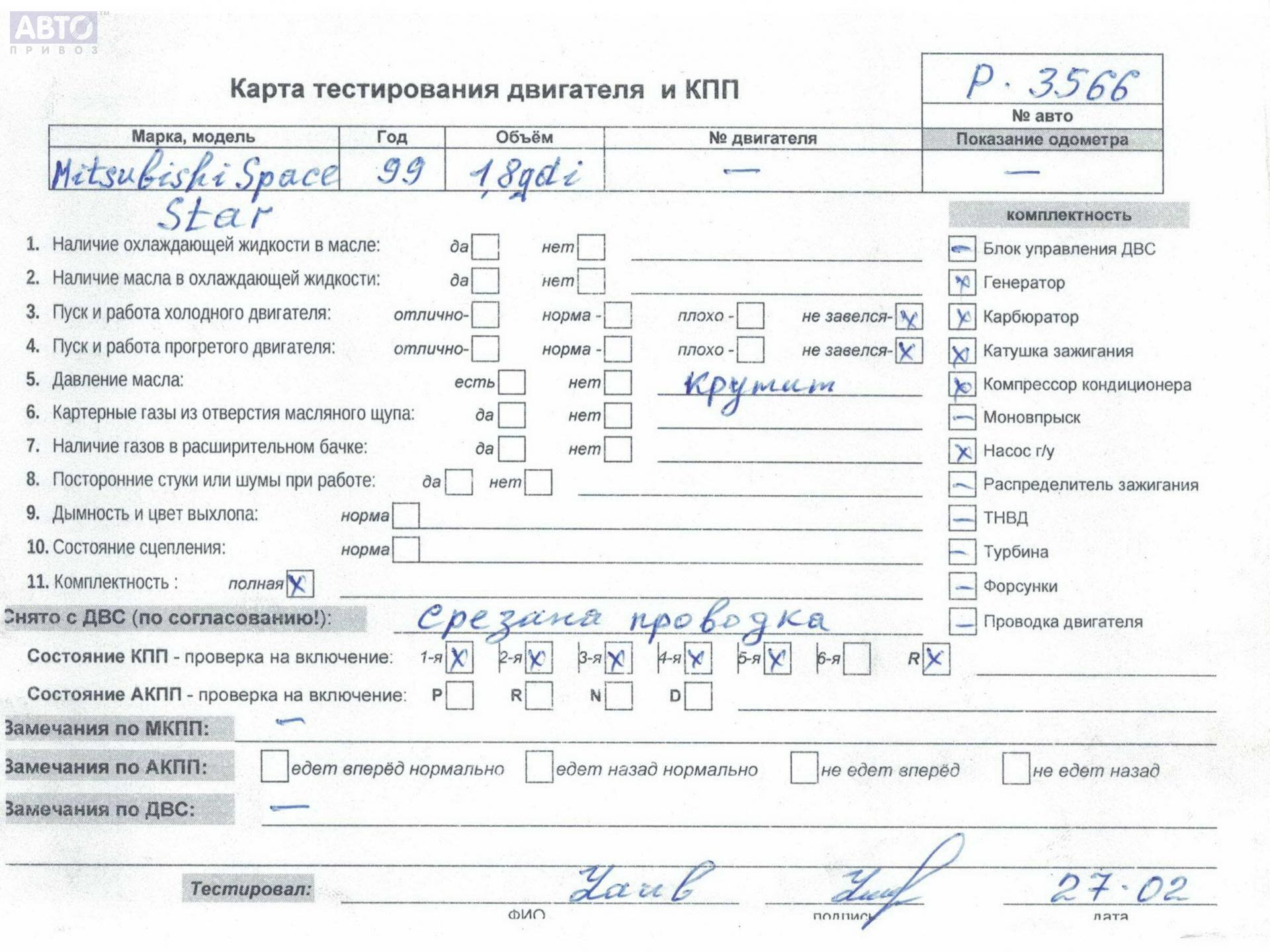 | Марка / Модель / Год: | Mitsubishi Space Star (1998-2005) 1999 |