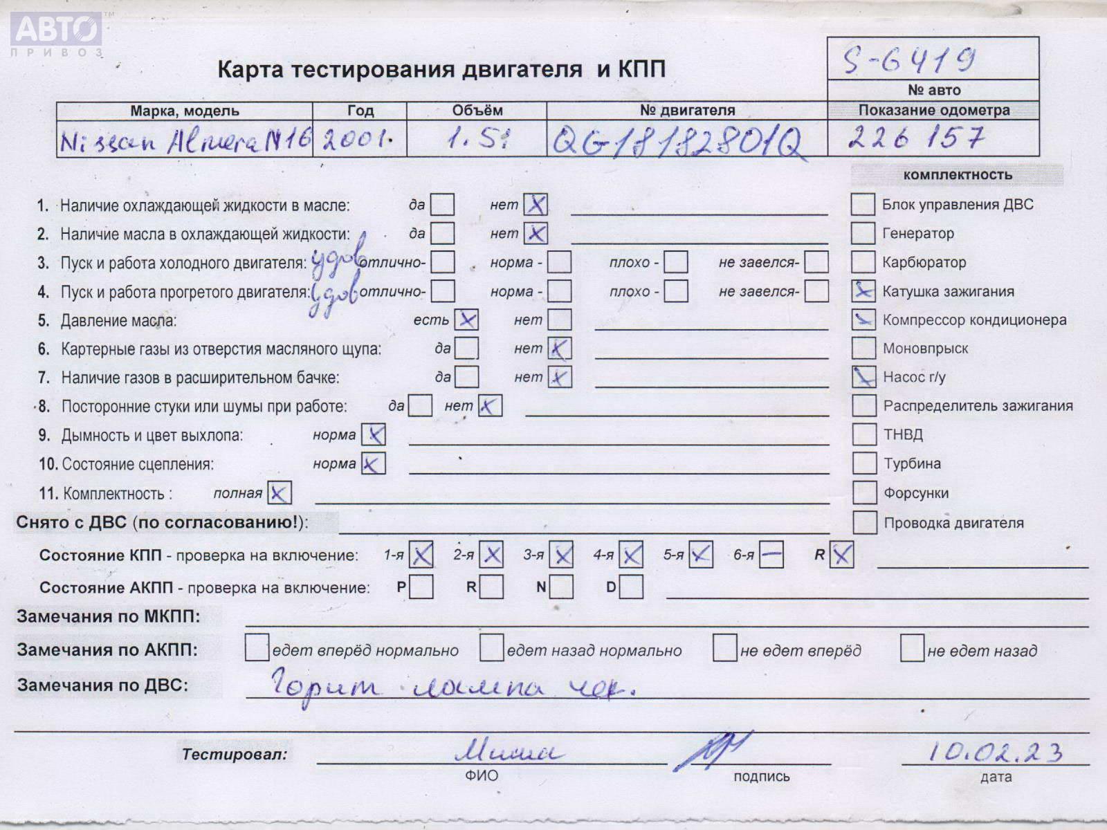 | Марка / Модель / Год: | Nissan Almera N16 (2000-2007) 2001 |