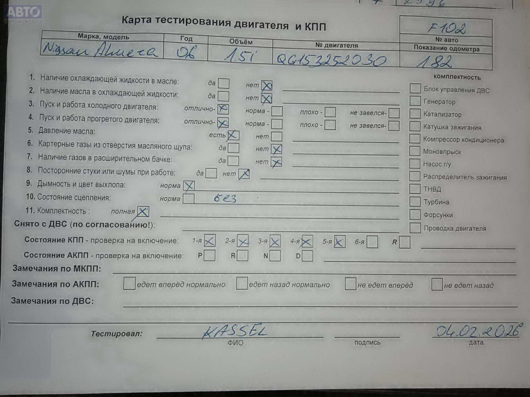 | Марка / Модель / Год: | Nissan Almera N16 (2000-2007) 2005 |