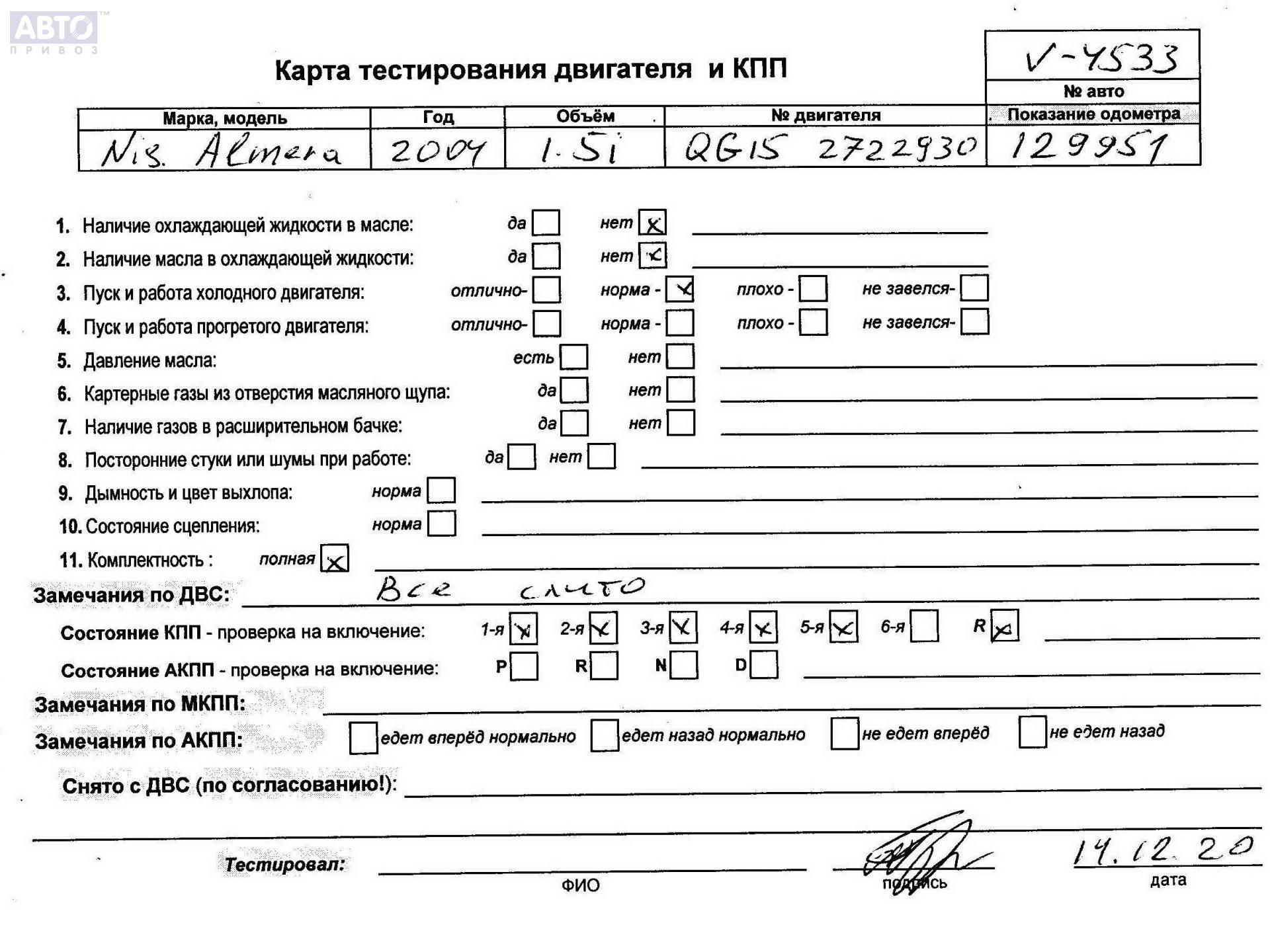 | Марка / Модель / Год: | Nissan Almera N16 (2000-2007) 2004 |