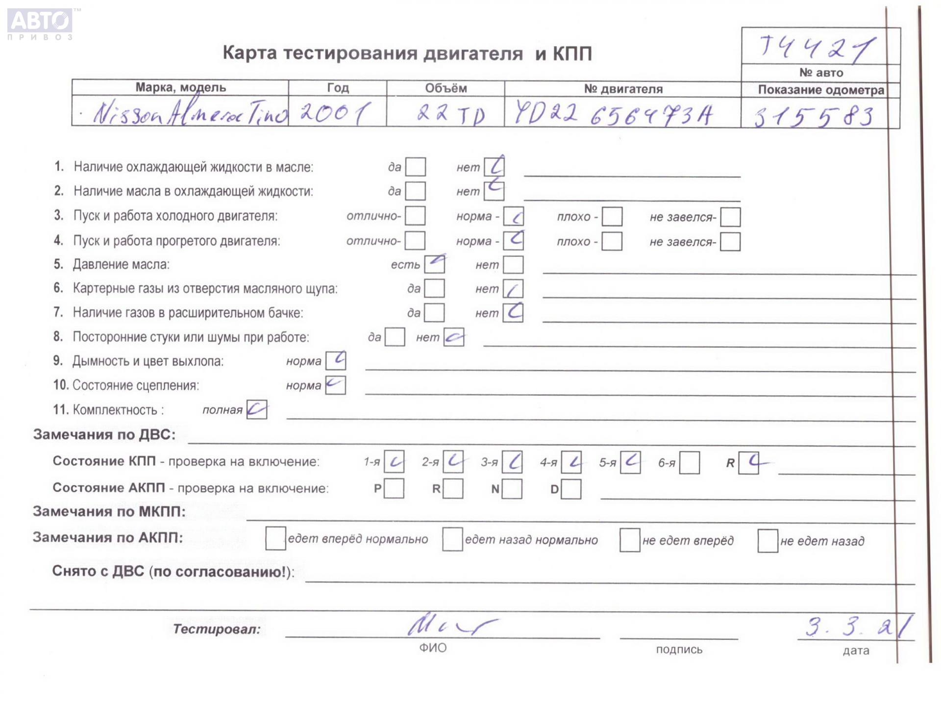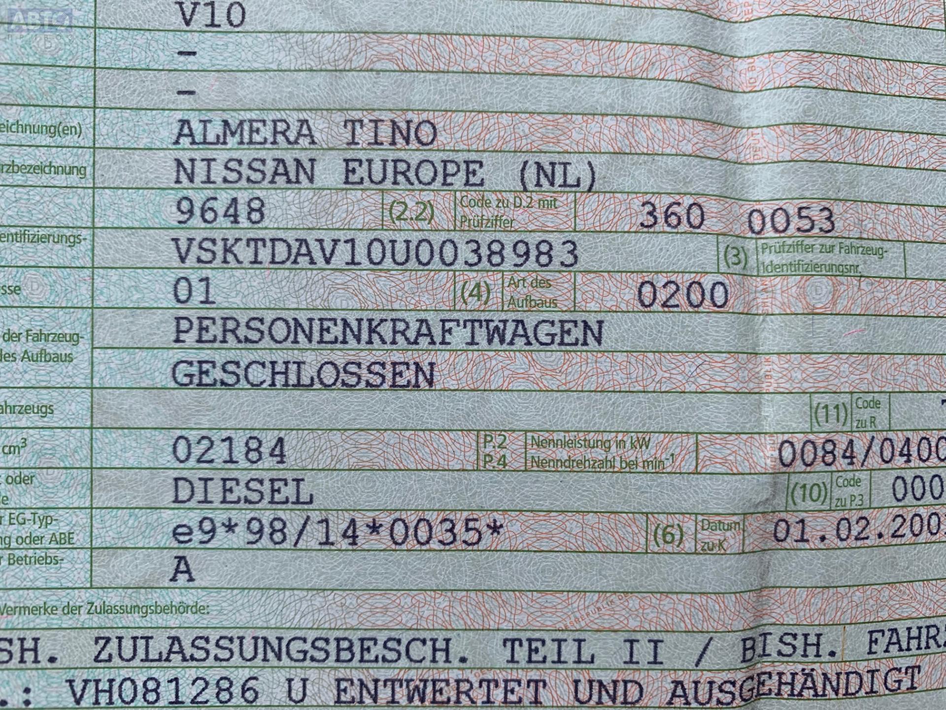 | Марка / Модель / Год: | Nissan Almera Tino 2001 |