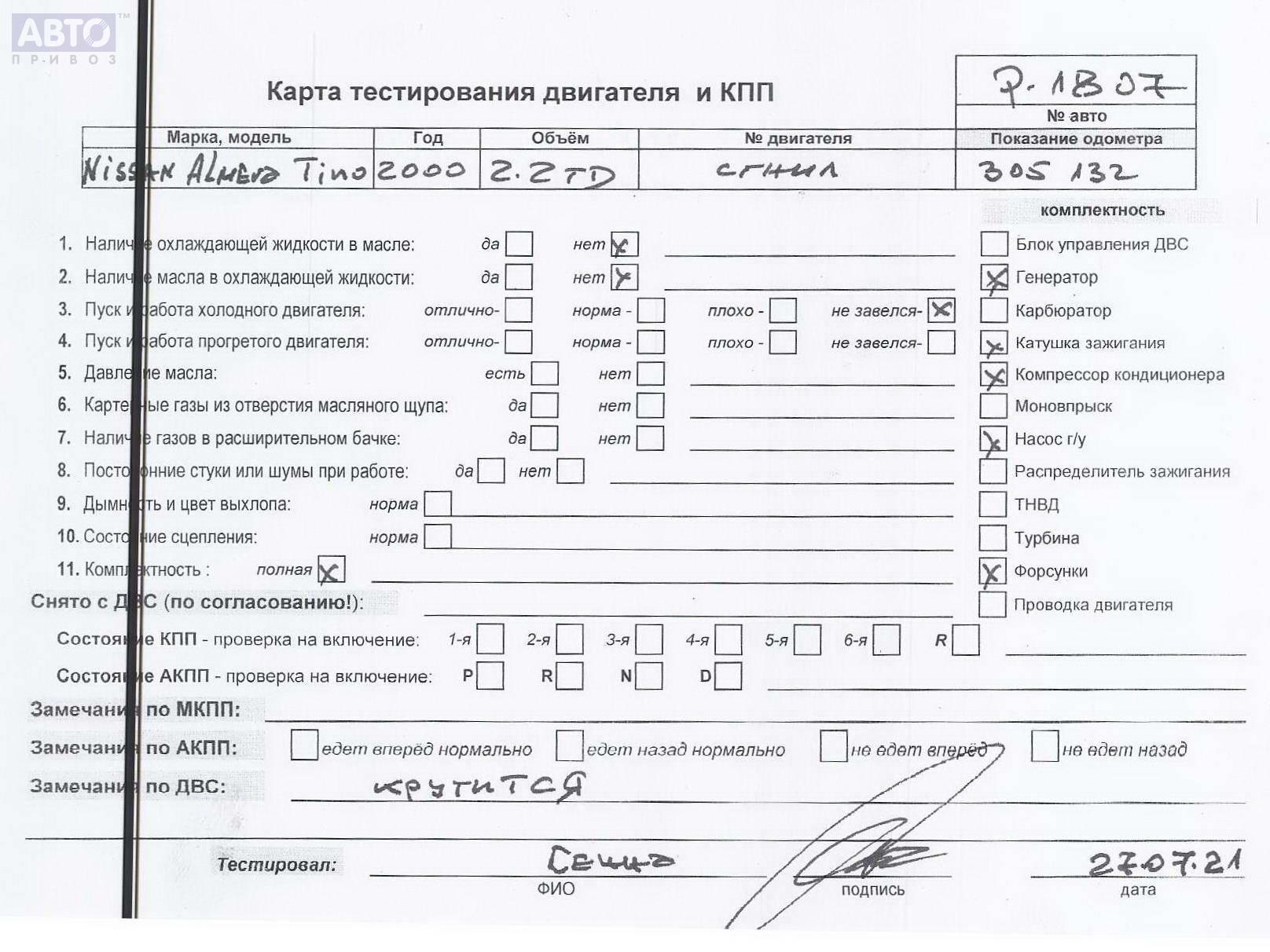 | Марка / Модель / Год: | Nissan Almera Tino 2000 |