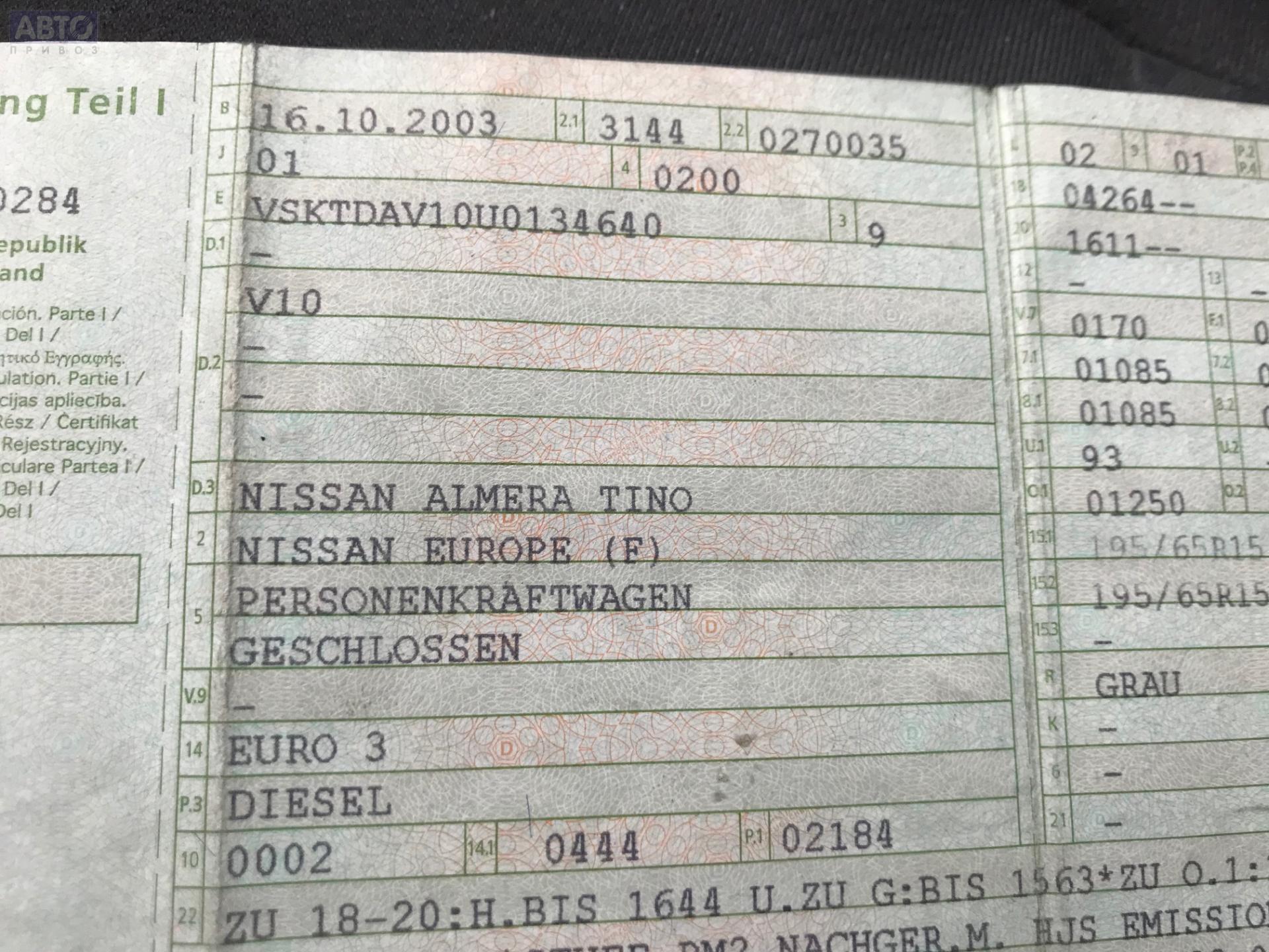 | Марка / Модель / Год: | Nissan Almera Tino 2003 |