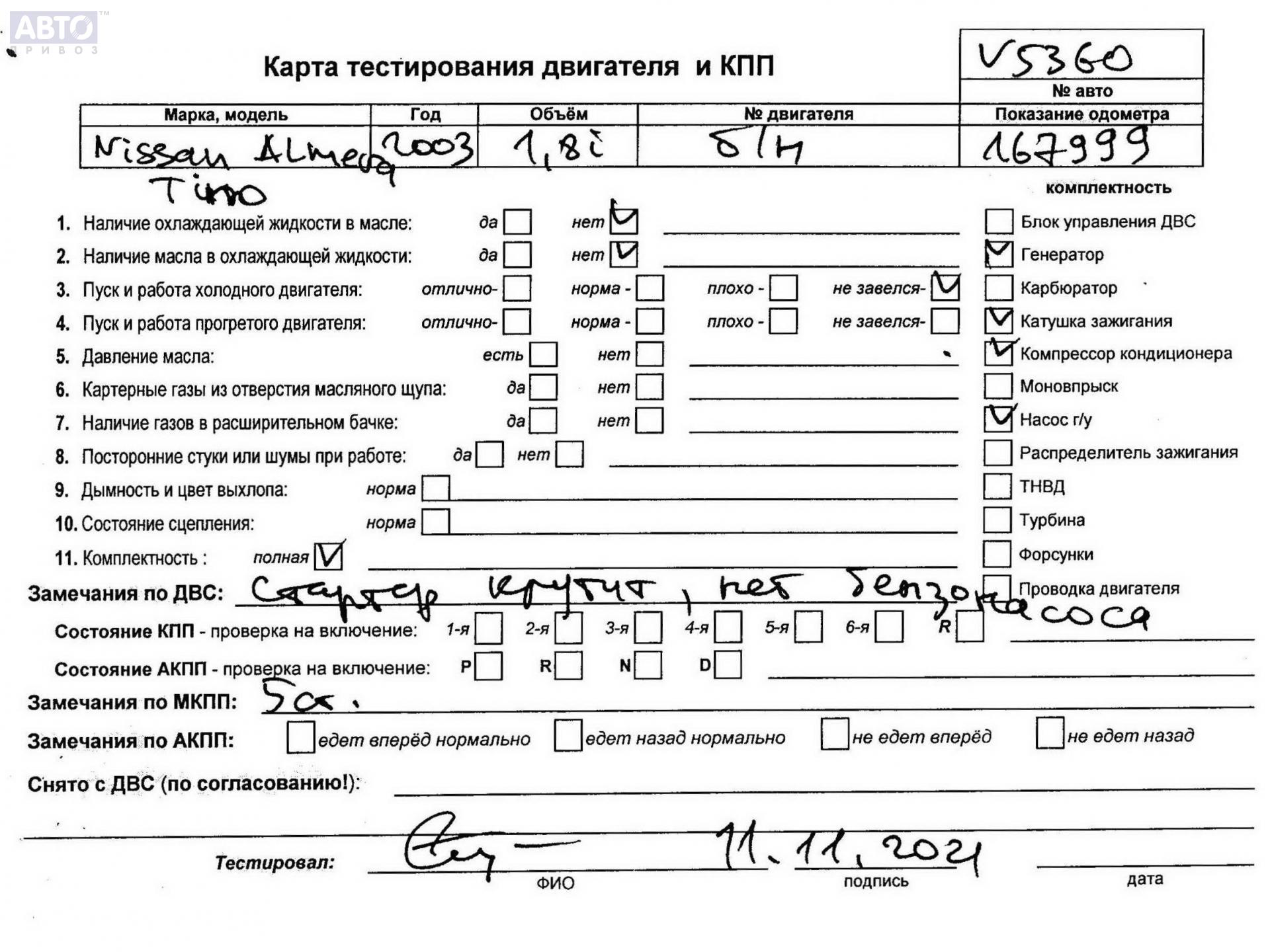 | Марка / Модель / Год: | Nissan Almera Tino 2003 |