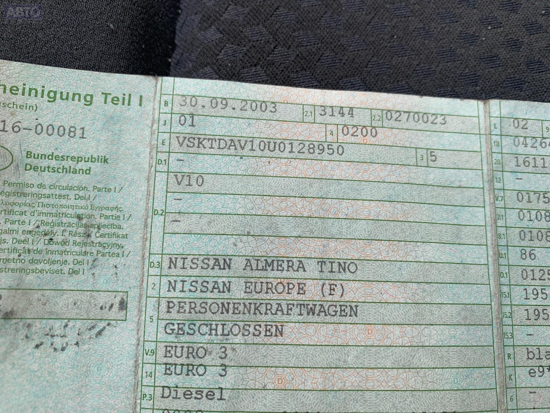 | Марка / Модель / Год: | Nissan Almera Tino 2003 |