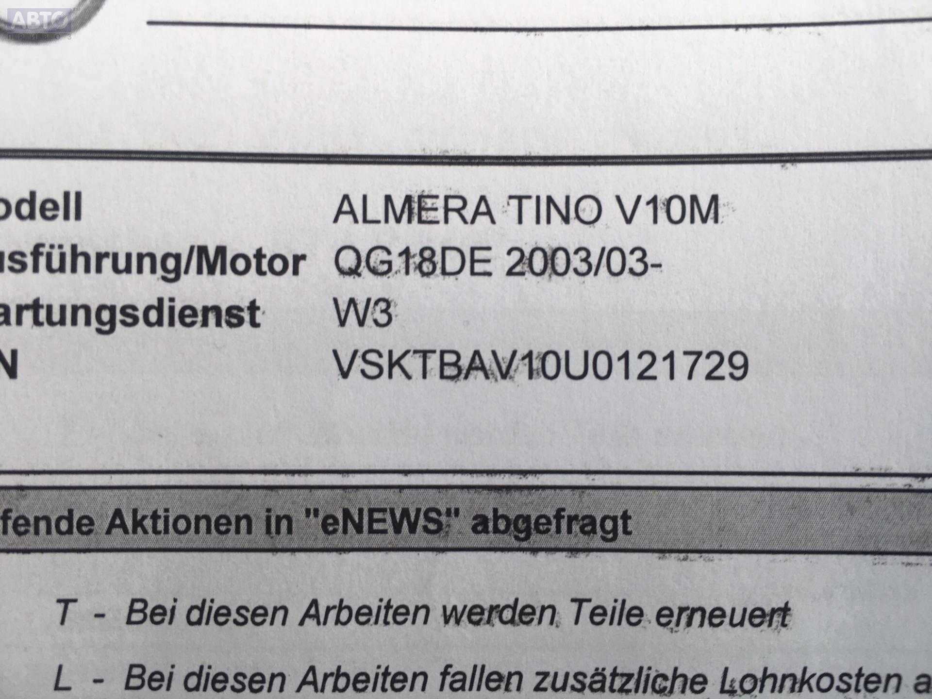 | Марка / Модель / Год: | Nissan Almera Tino 2003 |