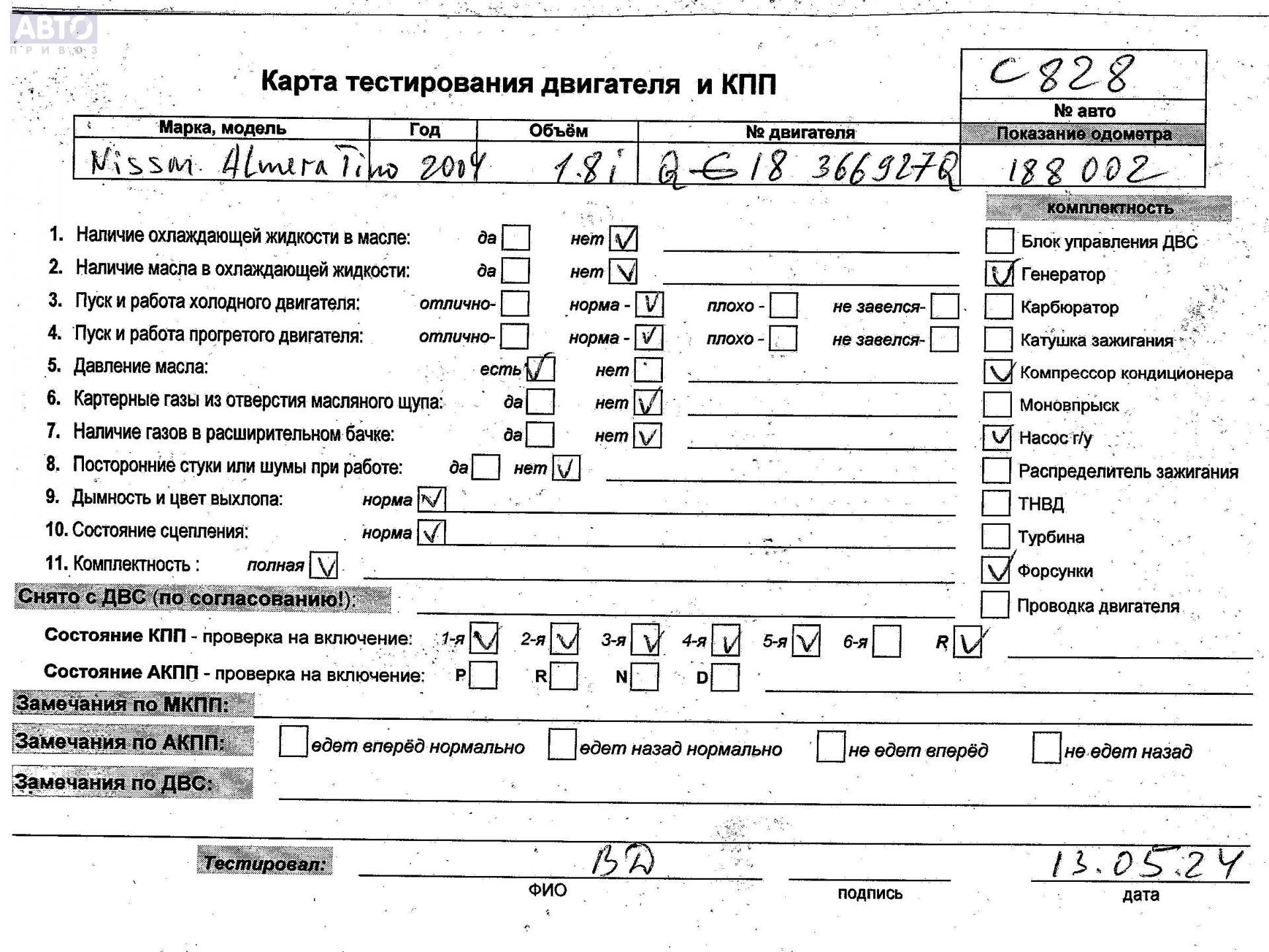 | Марка / Модель / Год: | Nissan Almera Tino 2004 |