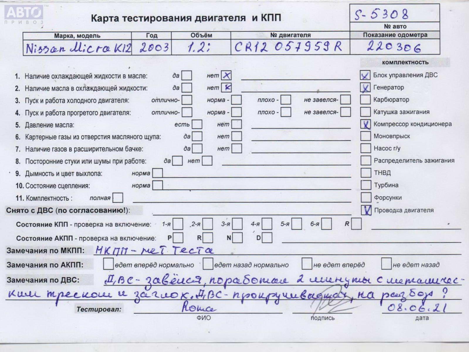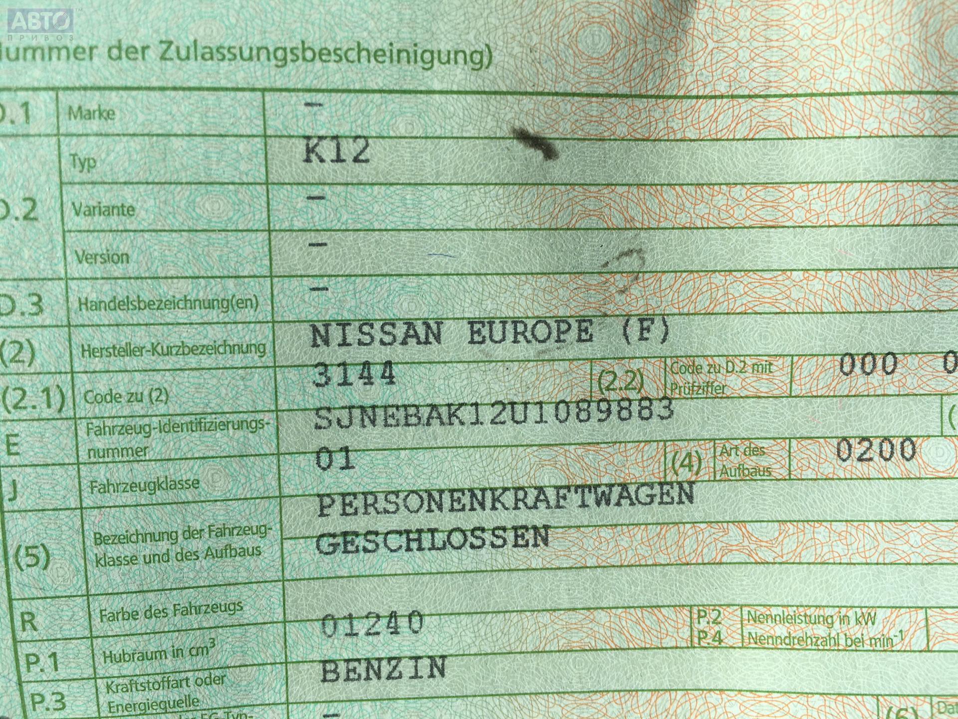 | Марка / Модель / Год: | Nissan Micra K12 (2003-2010) 2003 |