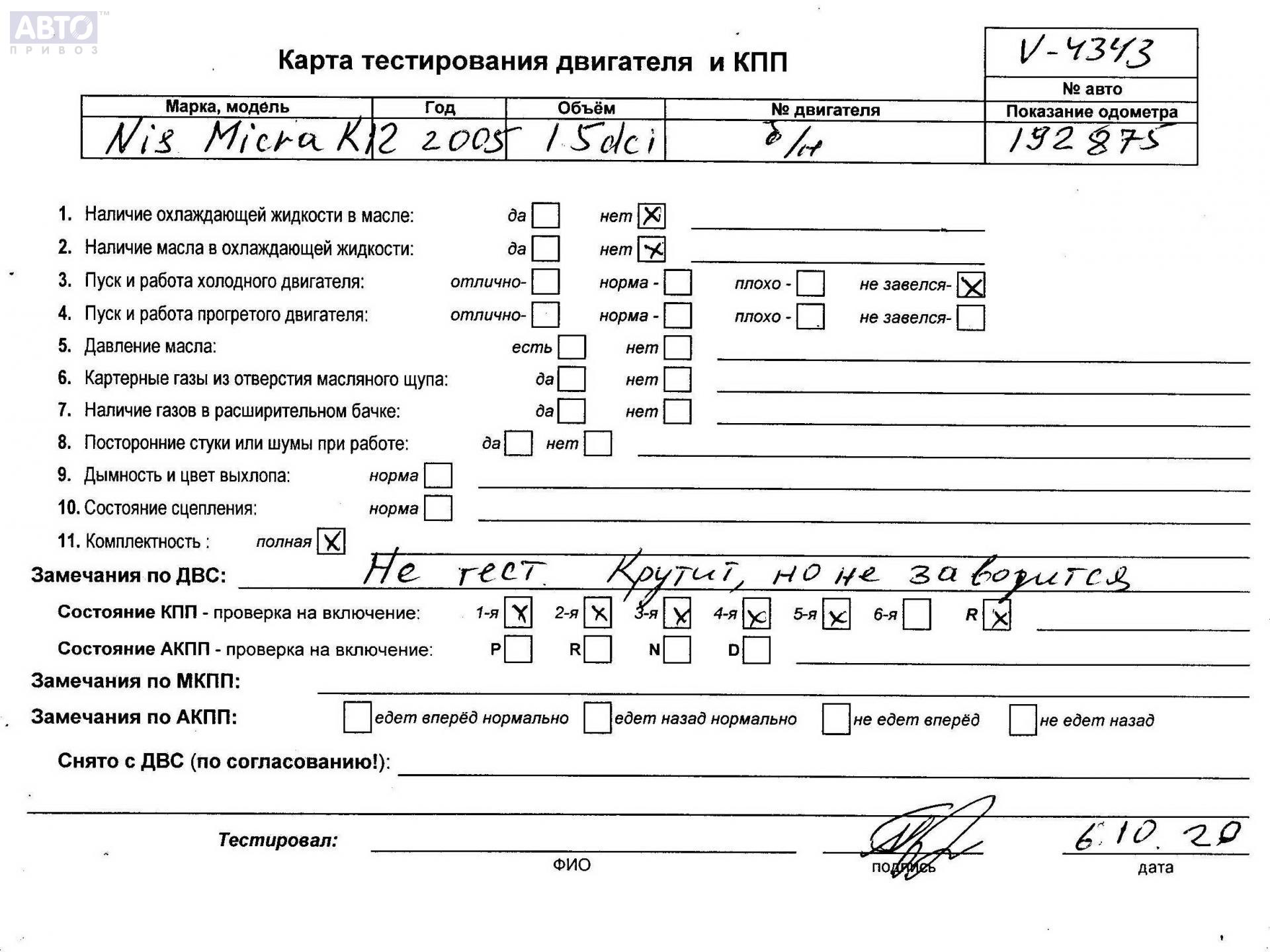 | Марка / Модель / Год: | Nissan Micra K12 (2003-2010) 2005 |