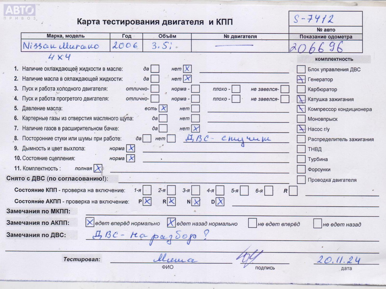 | Автомобиль / VIN: | S7412 JN1TANZ50U0011657 |