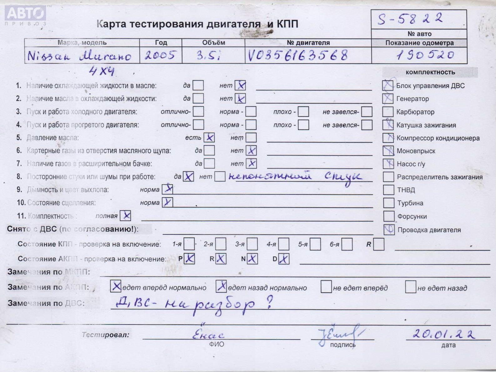 | Автомобиль / VIN: | S5822 JN1TANZ50U0008858 |