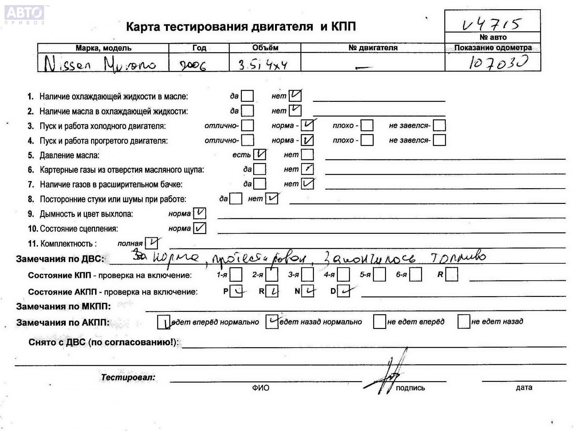 | Автомобиль / VIN: | V4715 JN1TANZ50U0015423 |
