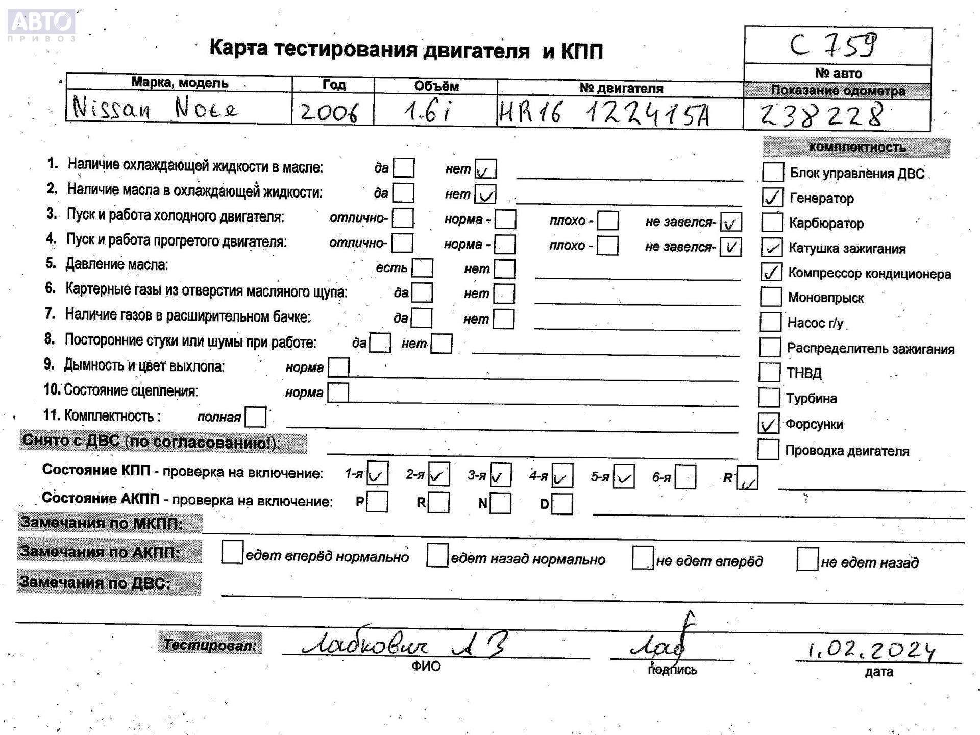 | Марка / Модель / Год: | Nissan Note 2006 |