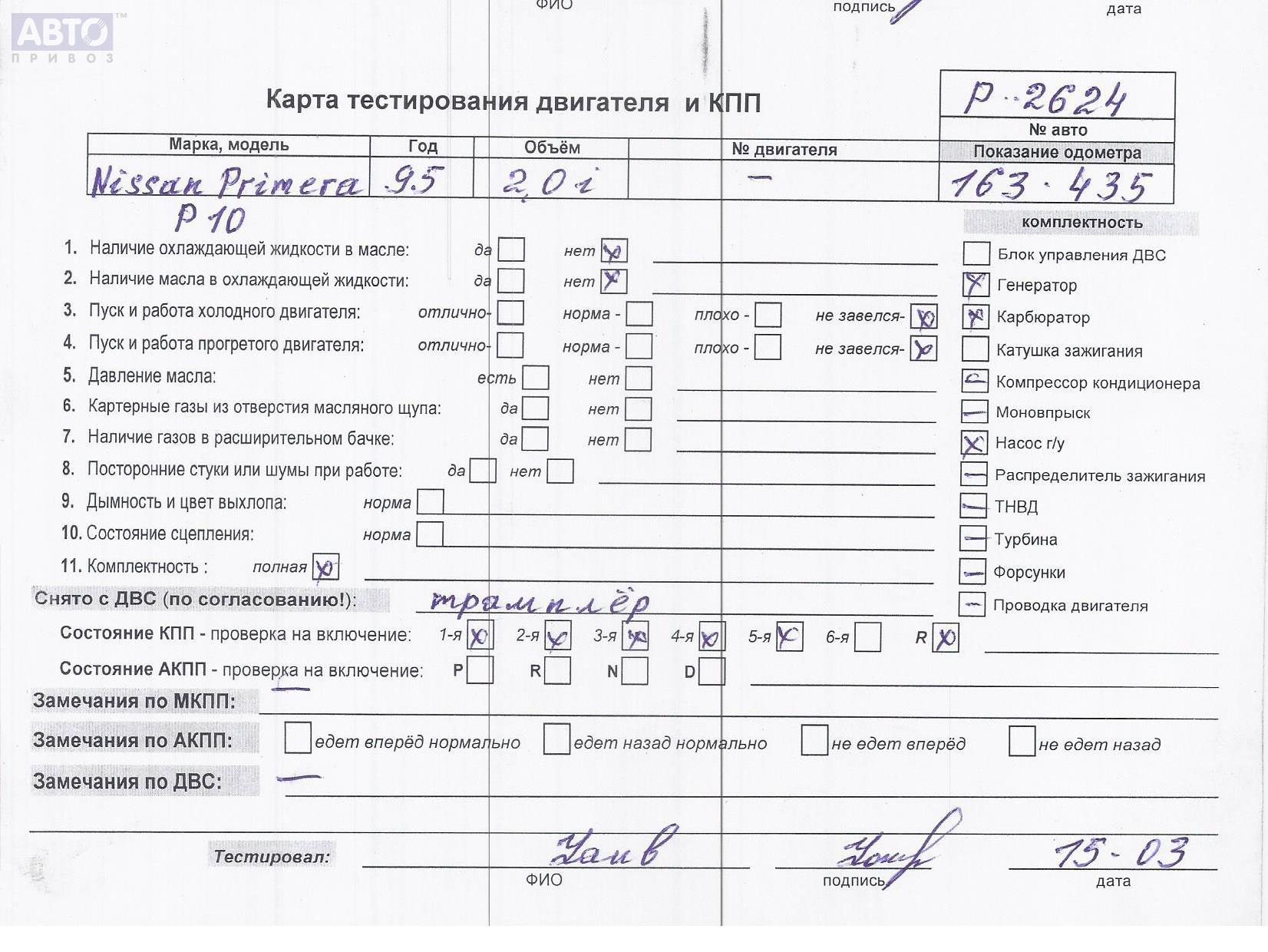 | Марка / Модель / Год: | Nissan Primera P10 (1990-1996) 1993 |