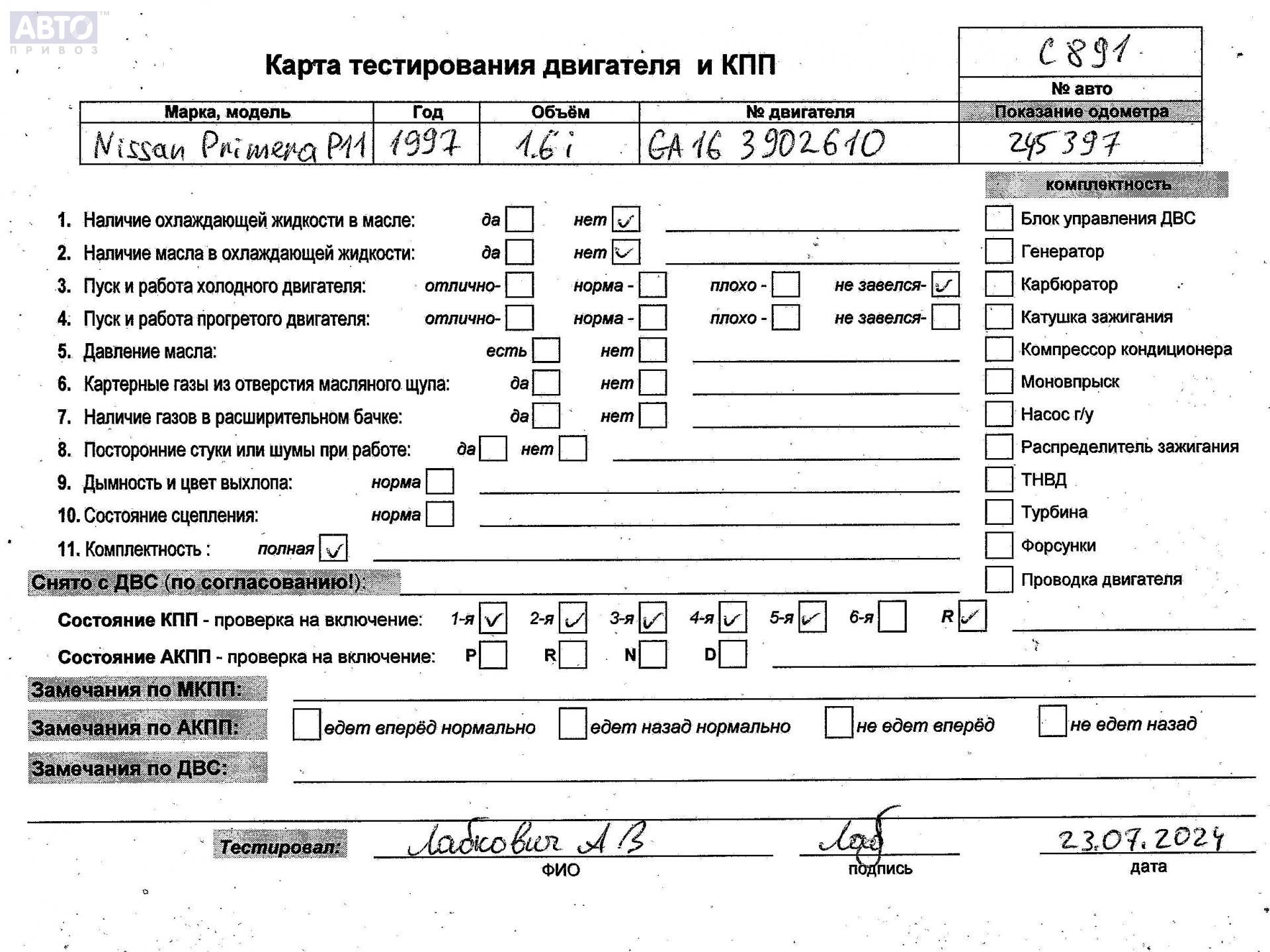 | Марка / Модель / Год: | Nissan Primera P11 (1996-1999) 1997 |