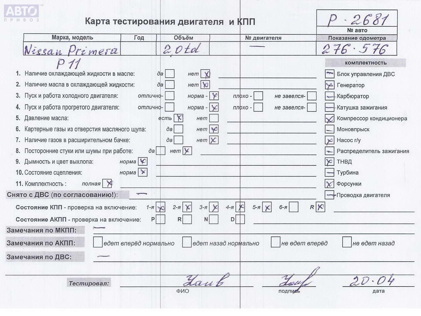 | Марка / Модель / Год: | Nissan Primera P11 (1996-1999) 1997 |