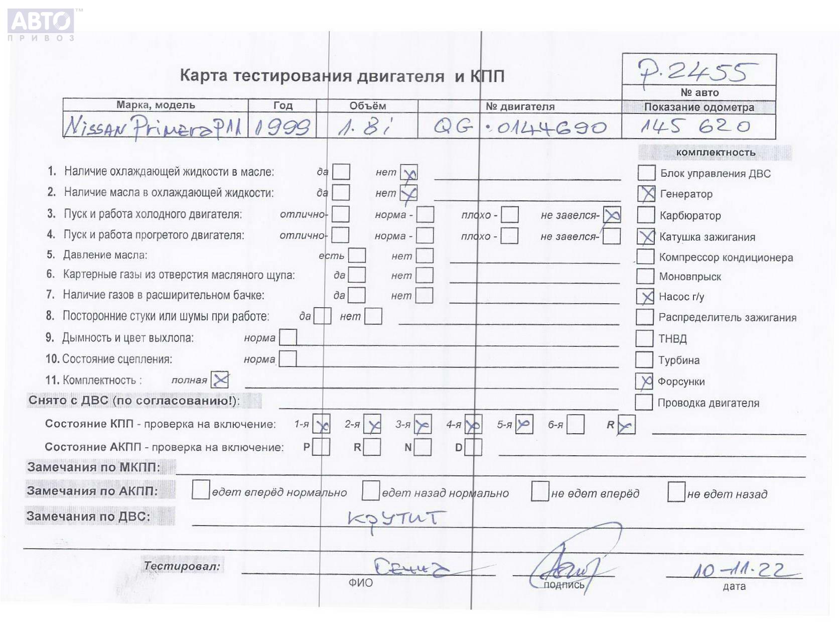| Марка / Модель / Год: | Nissan Primera P11 (1999-2002) 1999 |