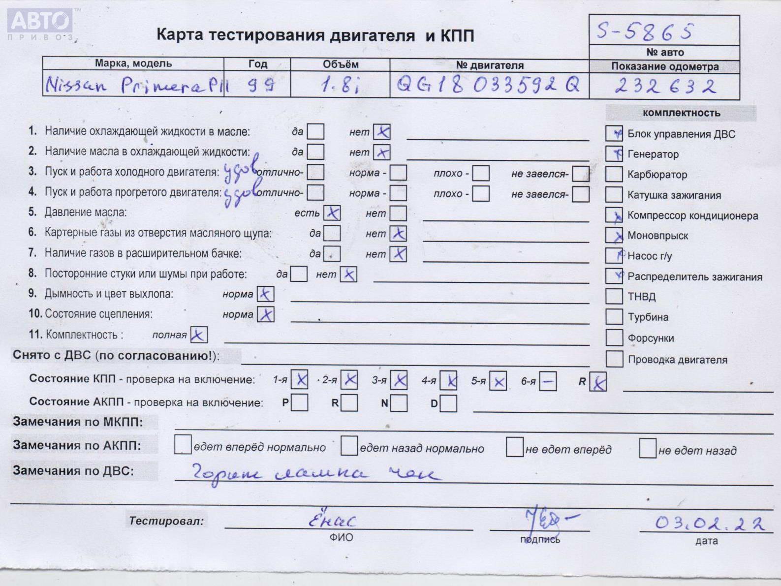 | Марка / Модель / Год: | Nissan Primera P11 (1999-2002) 1999 |