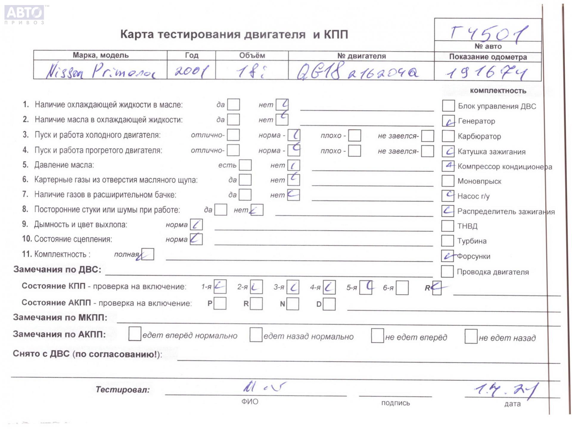| Марка / Модель / Год: | Nissan Primera P12 (2002-2008) 2002 |