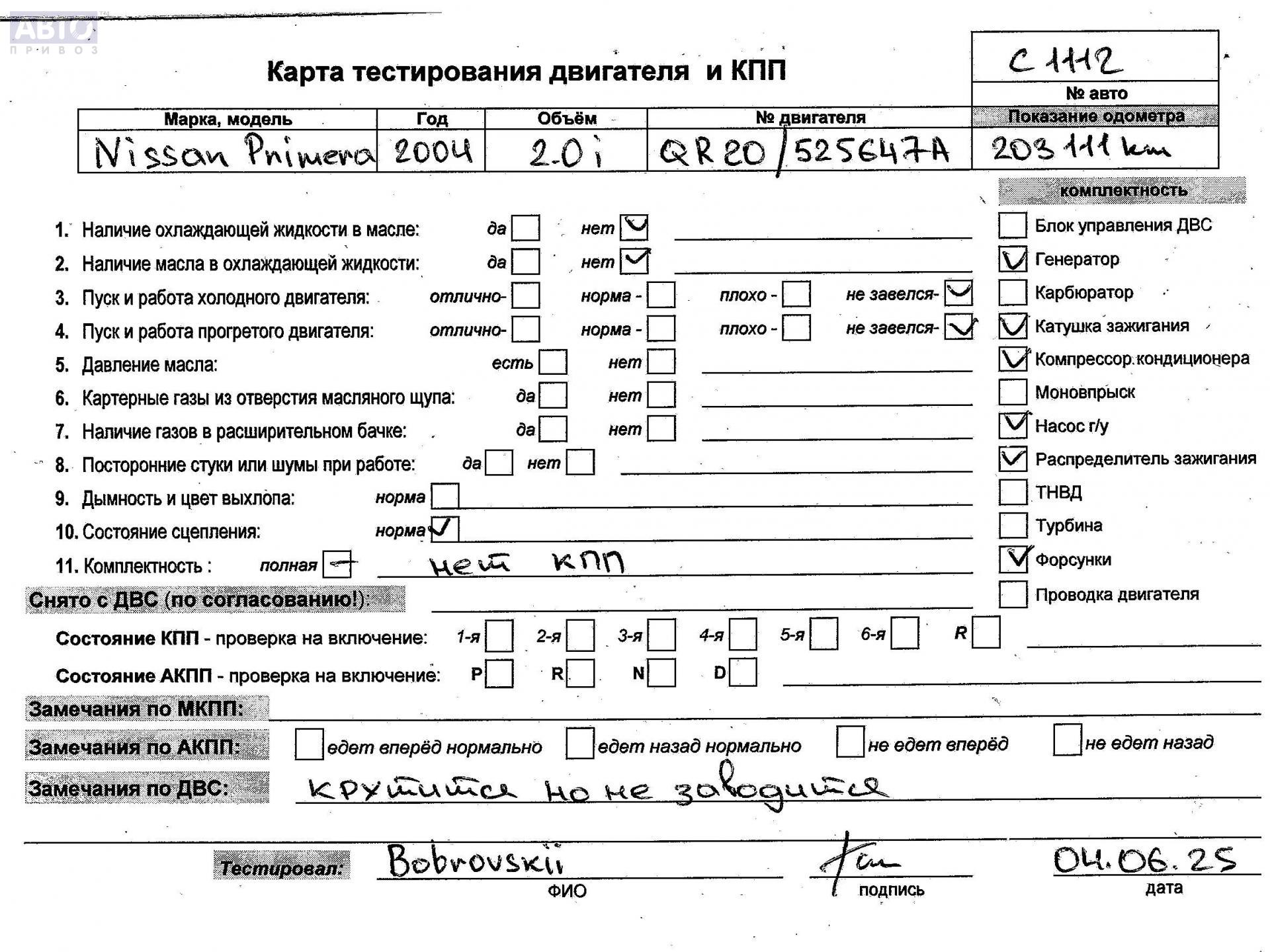 | Марка / Модель / Год: | Nissan Primera P12 (2002-2008) 2004 |