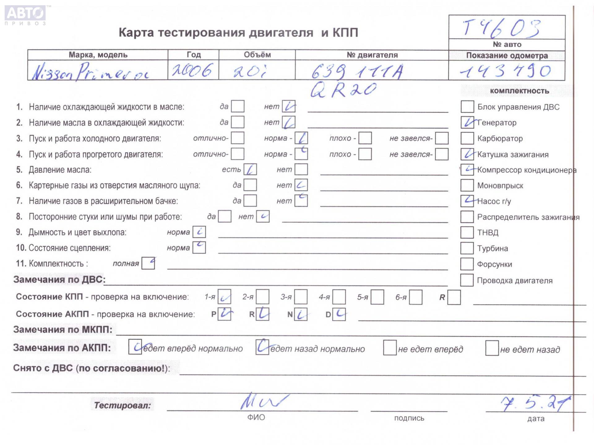 | Марка / Модель / Год: | Nissan Primera P12 (2002-2008) 2006 |