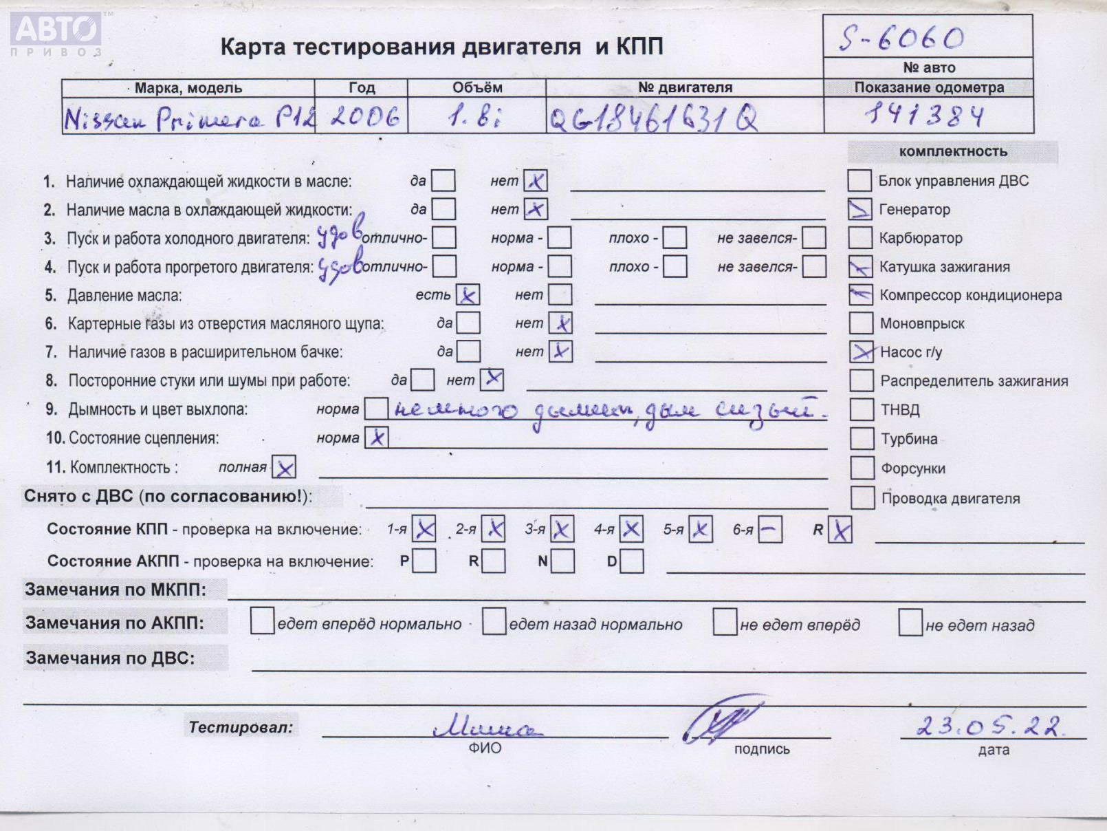 | Марка / Модель / Год: | Nissan Primera P12 (2002-2008) 2006 |